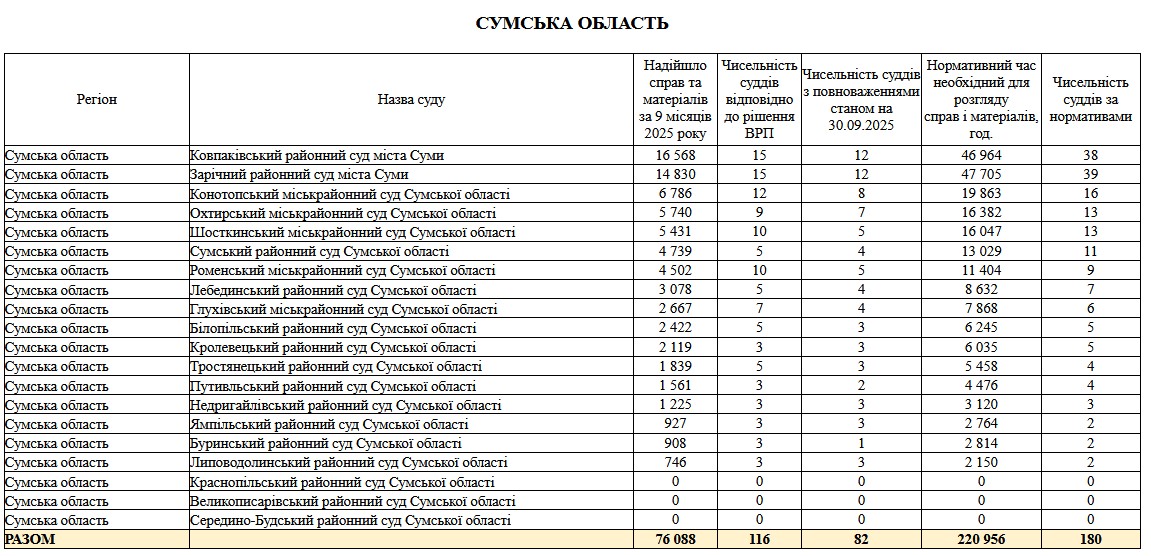 Рада суддів України оновила інтерактивну карту судів України з розрахунками нормативів навантаження на суддів і суди з урахуванням кількості справ, які розглядалися судами впродовж 9 місяців 2025 року.
